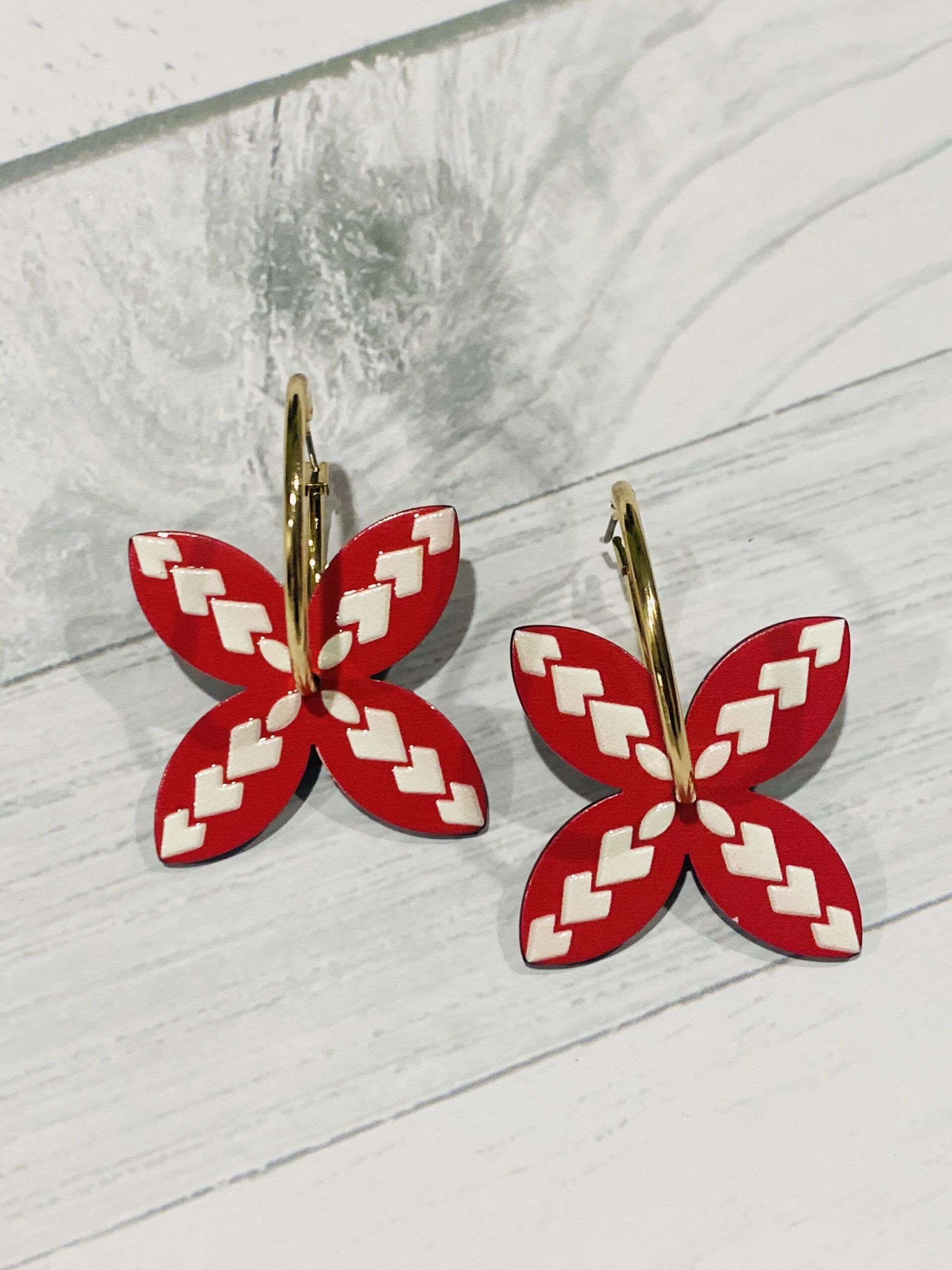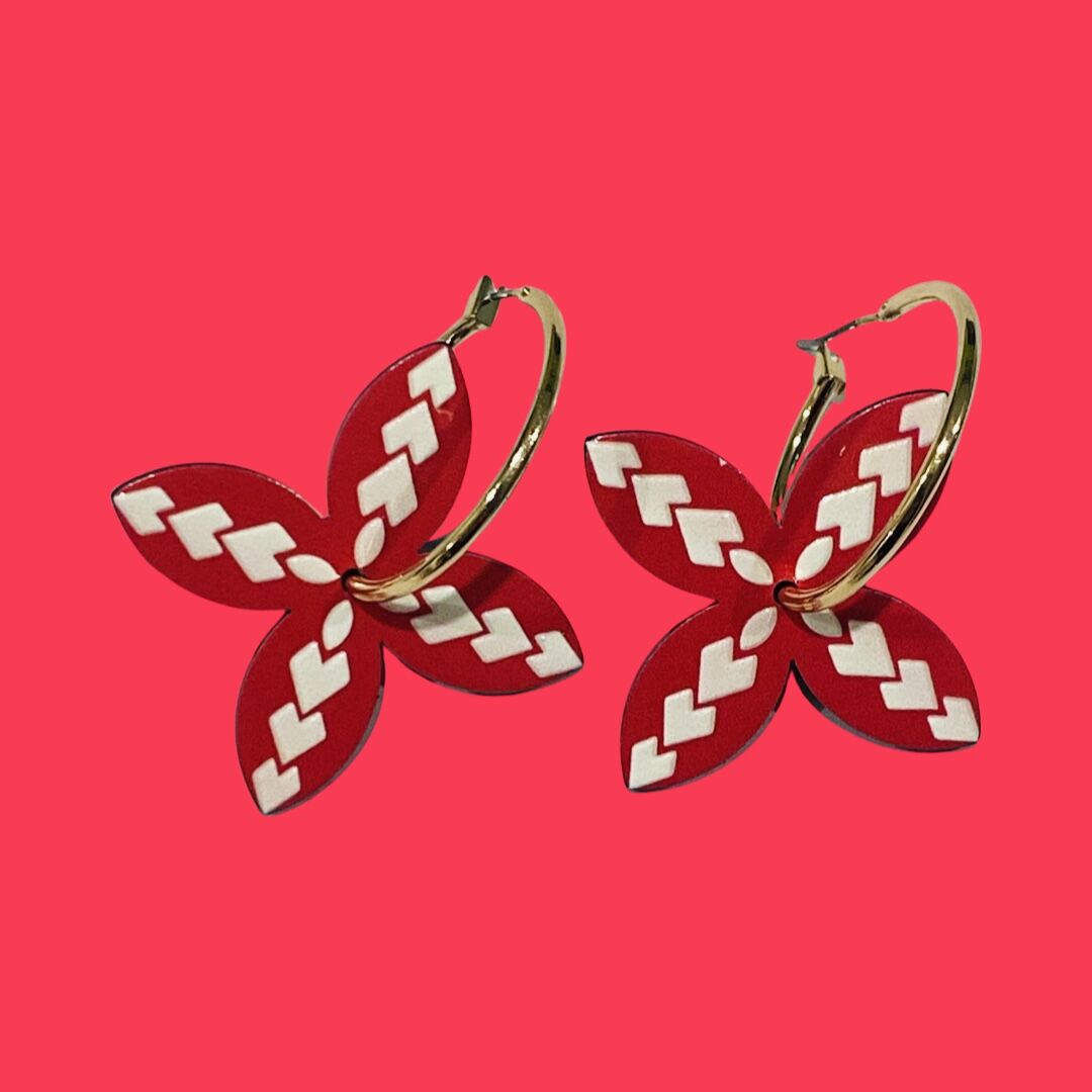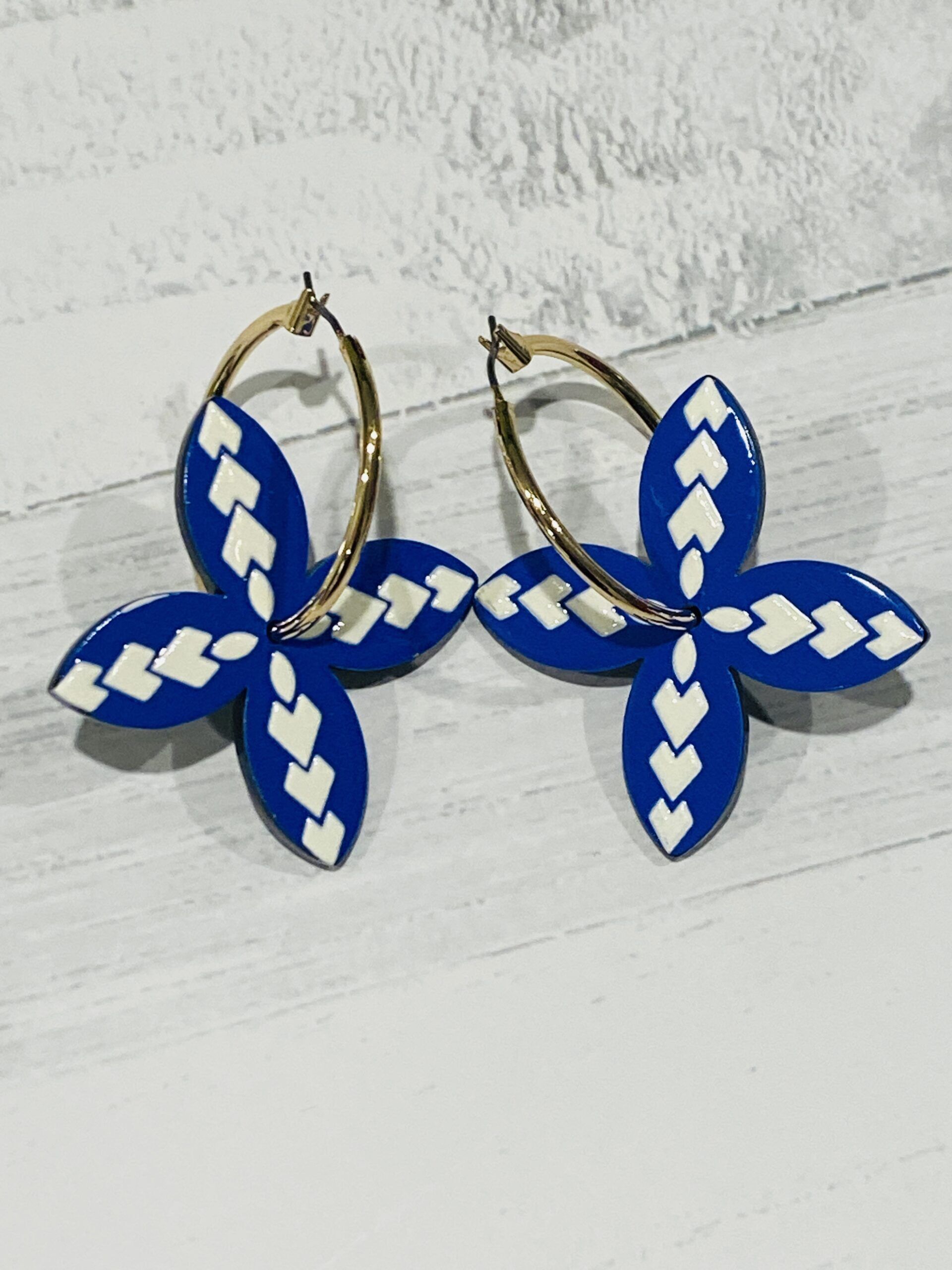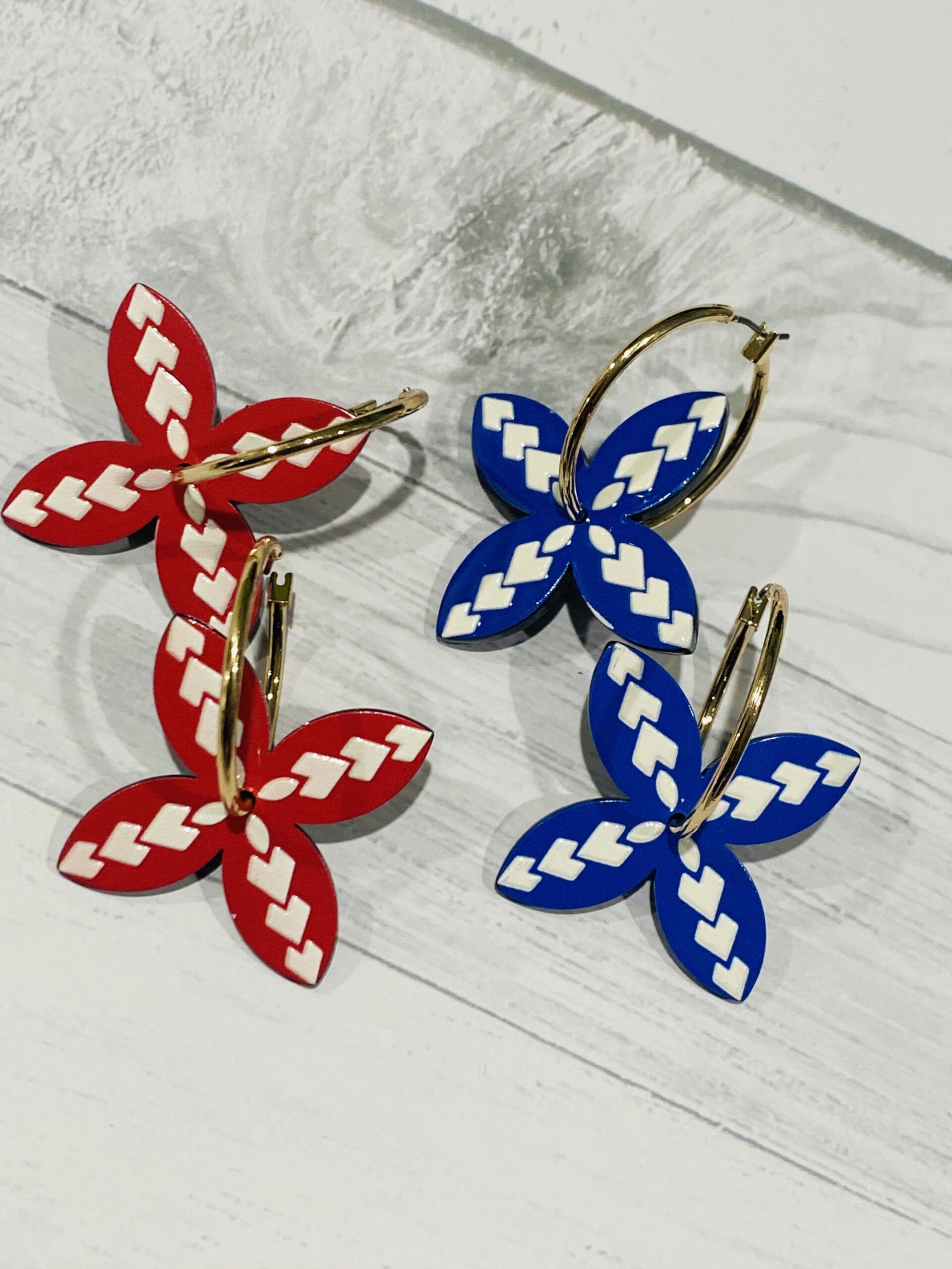 These island-inspired flower hoop earrings combine vibrant tropical patterns with a classic hoop silhouette. Lightweight and stylish, they bring a playful, elegant touch to both casual and dressy outfits. Available in Red and Blue