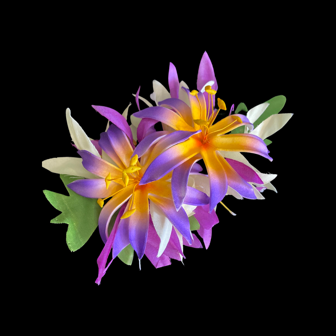 Hawaiian Floral Sei Hair Clip: A charming hair accessory featuring vibrant Hawaiian-inspired florals, available in a variety of colors — perfect for adding a touch of tropical elegance to any hairstyle.